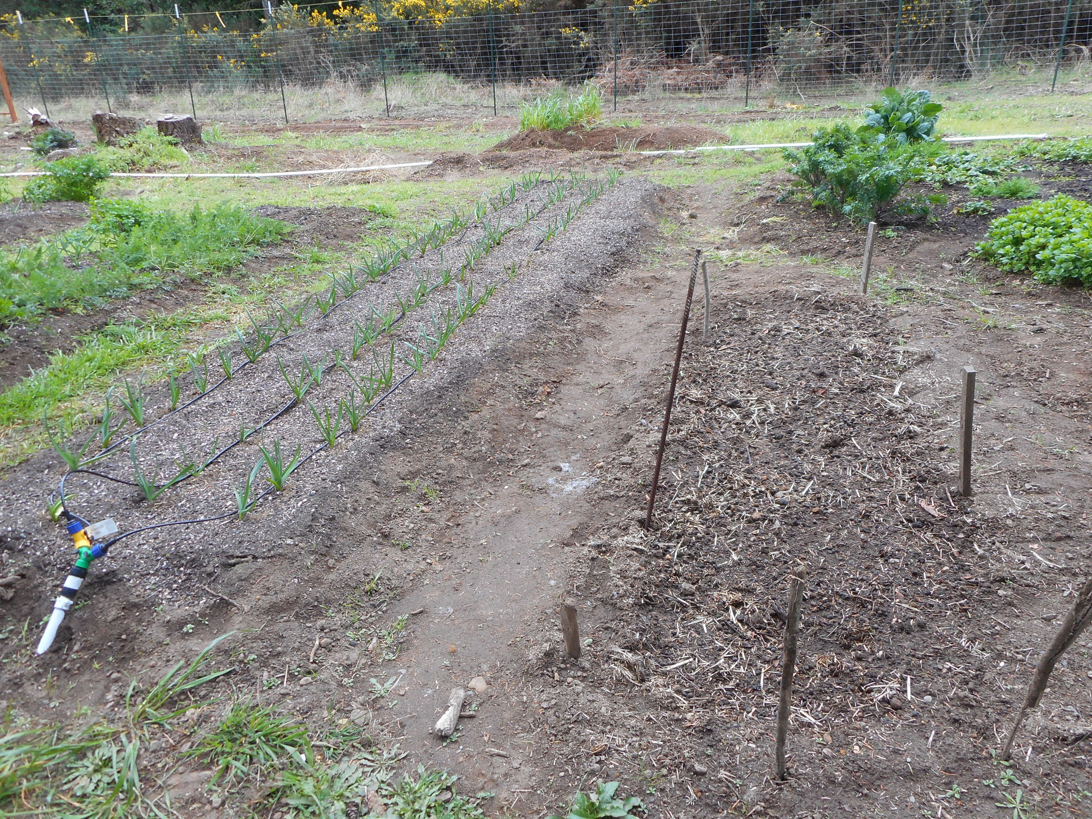 We rehabilitated a small 8'x12' greenhouse, fenced in 1/4 acre with 6' high fence, and began building 3'x20' garden beds. Since our soil is poor for agriculture, mostly sand and clay with low pH from conifer litter, we used barnyard manure mixed with maple, alder, and myrtle leaves to make compost and soil. After 7 years, we built up twenty garden beds, averaging 3 ft. wide by 20 ft. long. Now we can produce all our salad greens, 7 to 8 months of our garlic and onion needs, and all winter we harvest broccoli, arugula, carrots, kale, and cilantro. In the winter, it rarely frosts or freezes. However, the summers are cool and dry, in high 60°s, and it is windy in June and July. The cool summers leave tomatoes, peppers, eggplants and hot weather crops struggling. In order to achieve warm soil temperatures, we use cloatches and wind protections. We have grown bumper crops of tomatoes and peppers with cloche coverings and hoop houses, but these require extra labor to roll up the coverings in the day and roll them back down at night. The cloatches and coverings also prevent precipitation for watering the plants.